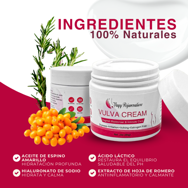 Hidrata y rejuvenece tus zonas más íntimas con Vulva Cream , una crema orgánica para la vulva diseñada para calmar, proteger e hidratar la piel sensible. Disfruta de un retorno a la intimidad sin dolor con su fórmula suave y eficaz.